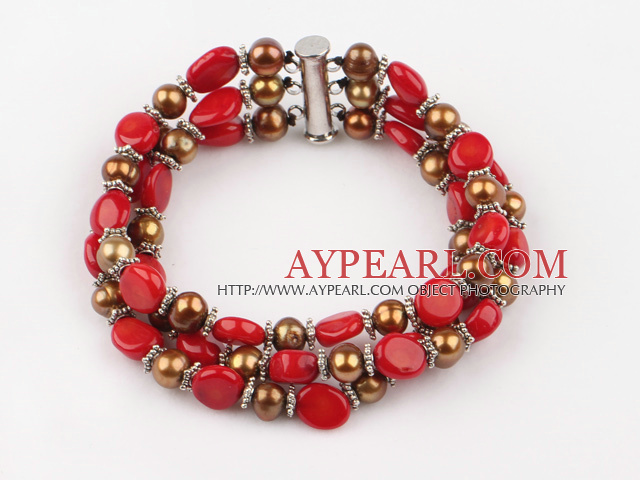 About the item three strand pearl and coral braclet with slide clasp All of our products are handmade and we try to keep the natural features of each product while cutting and carving. There will be some color difference between the real items and the pictures because of the brightness, contrast and resolution or other factors.