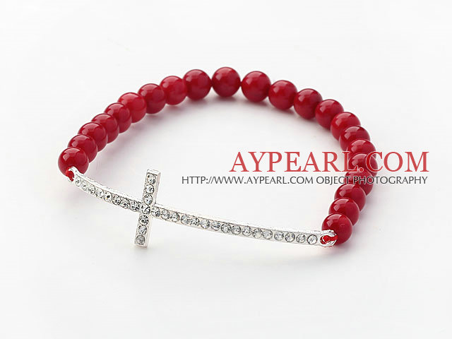 About the item Red Series 6mm Red Coral Beads and Sideway/Side Way White Rhinestone Cross Stretch Bracelet All of our products are handmade and we try to keep the natural features of each product while cutting and carving. There will be some color difference between the real items and the pictures because of the brightness, contrast and resolution or other factors.
