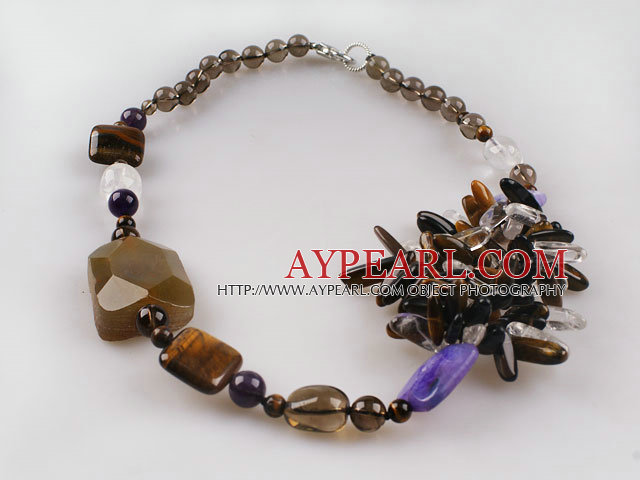 About the item Fabulous new style tiger eye smoky quartze and crystal necklace All of our products are handmade and we try to keep the natural features of each product while cutting and carving. There will be some color difference between the real items and the pictures because of the brightness, contrast and resolution or other factors.