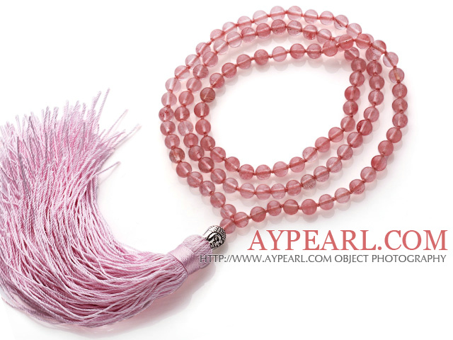Home > Crystal Jewelry > Crystal Necklace > Simple Long Style Round Cherry Quartz Beads Necklace with Buddha Head and Pink Tassel(can also be as bracelet)