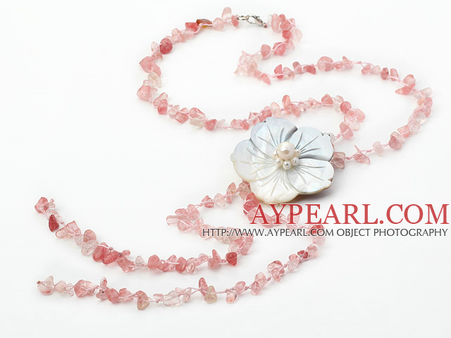 About the item fashion long style cherry quartze chips and shell flower necklace with lobster clasp All of our products are handmade and we try to keep the natural features of each product while cutting and carving. There will be some color difference between the real items and the pictures because of the brightness, contrast and resolution or other factors.
