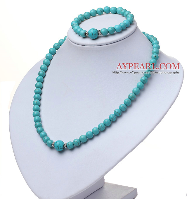 About the item Fashion Natural Round Turquoise Beaded Necklace With Matched Elastic Bracelet Jewelry Set All of our products are handmade and we try to keep the natural features of each product while cutting and carving. There will be some color difference between the real items and the pictures because of the brightness, contrast and resolution or other factors.