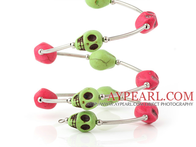 About the item Beautiful Multilayer Green And Red Skull Turquoise Wired Wrap Bangle Bracelet All of our products are handmade and we try to keep the natural features of each product while cutting and carving. There will be some color difference between the real items and the pictures because of the brightness, contrast and resolution or other factors.
